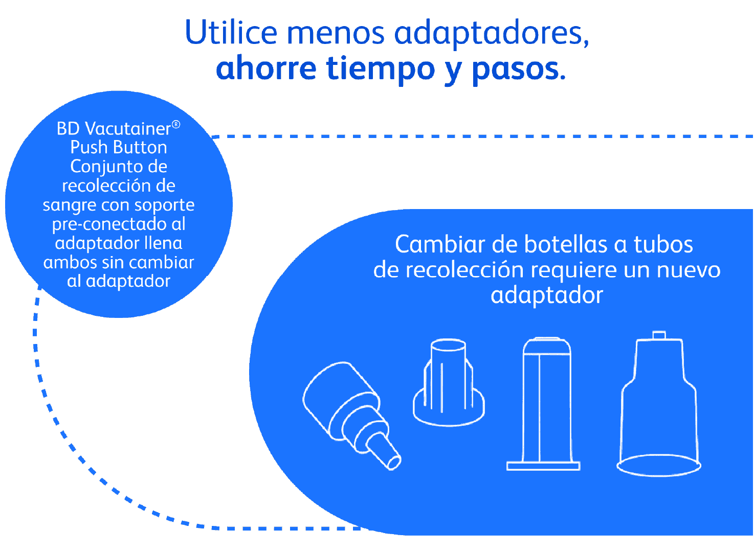 Con la solución integrada de cultivos sanguíneos de BD, puede utilizar el mismo soporte tanto para los frascos de cultivo de sangre como para los tubos de recolección de sangre.